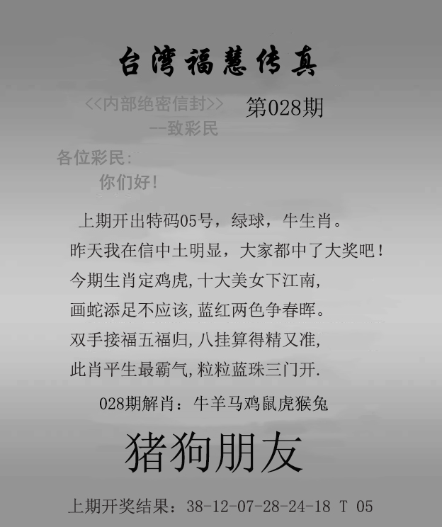 | 001期: ⑤肖 | 羊马鼠猪鸡 | 狗32 |
