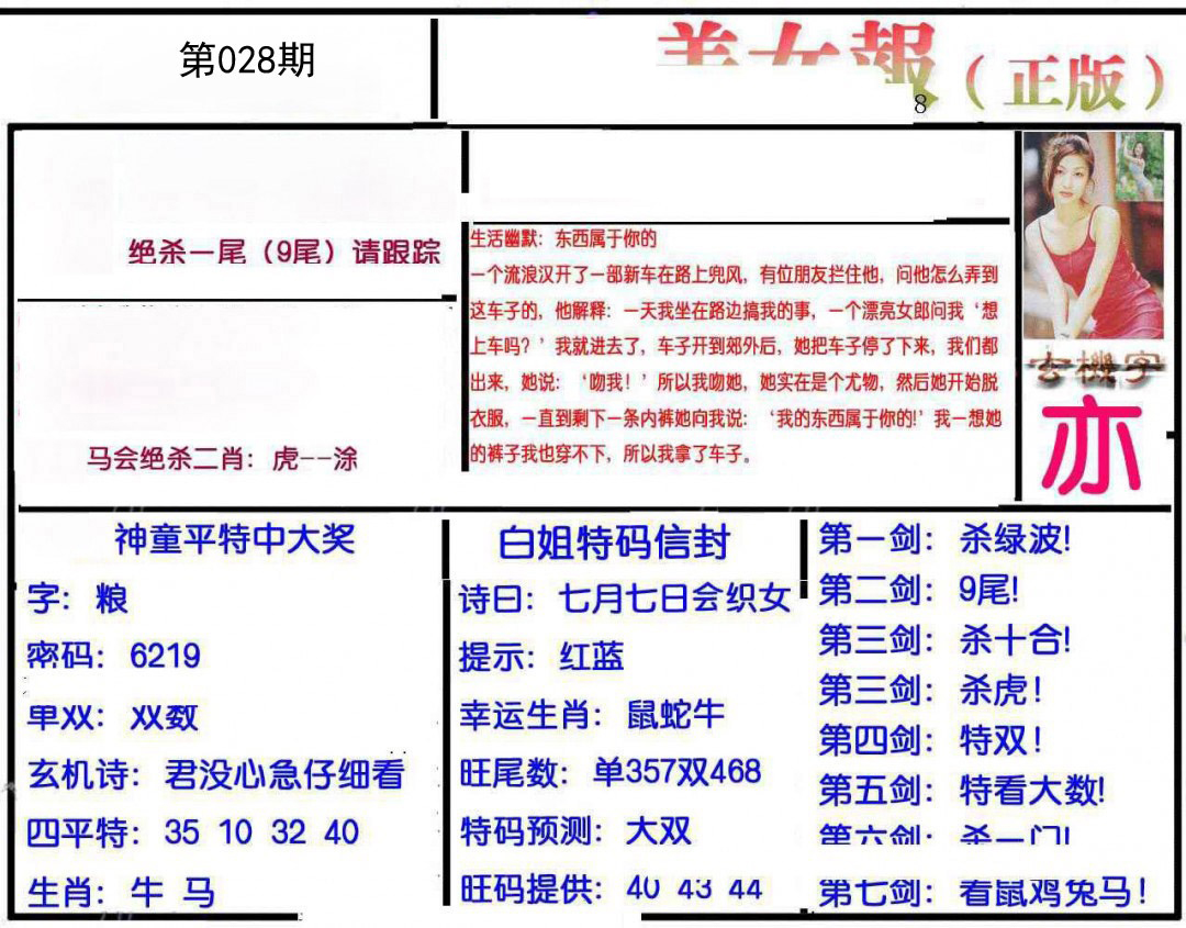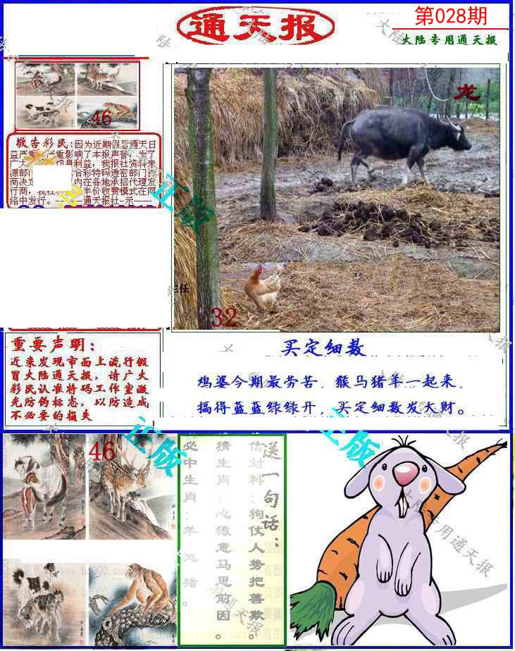 | 011期: ⑨肖 | 虎牛鼠鸡羊蛇狗猪猴 | 兔27 |