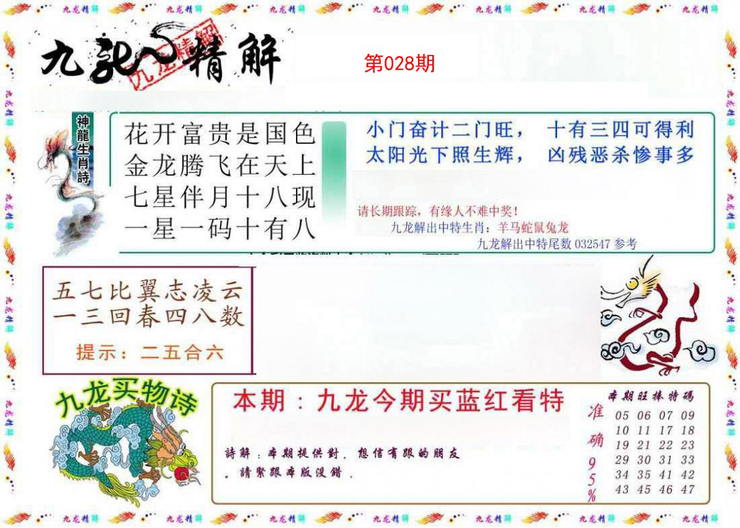 | 012期: ⑦肖 | 猴羊鸡虎狗蛇龙 | 龙02 |